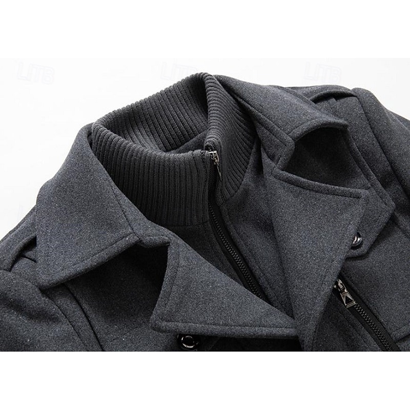 More information about Men's Winter Coat Wool Coat Overcoat Short Coat Outdoor Work Fall & Winter Wool Windproof Warm Outerwear Clothing Apparel Bustiers Essential Solid Colored Rolled collar Single Breasted