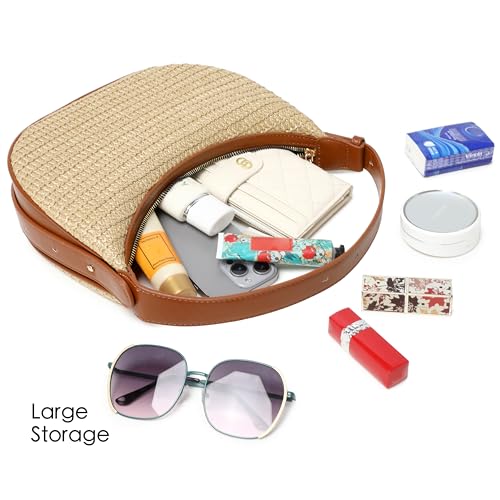 Women's Small Handmade Woven Straw Summer Beach Crescent Hobo Tote Crossbody Bag with Adjustable Strap 5