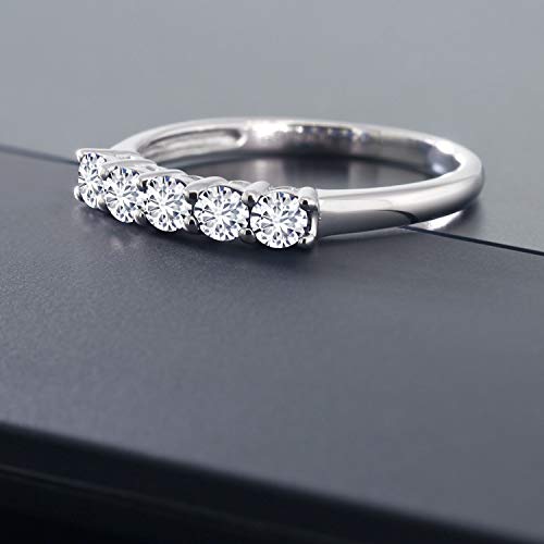 Gem Stone King 10K White Gold 3MM Round Gemstone Birthstone 5-Stone Wedding Engagement Anniversary Promise Gold Ring For Women | Available In Size 5, 6, 7, 8, 9 4
