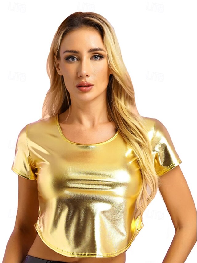 Retro Vintage 1980s T-shirt Crop Top Disco Shiny Latex Patent Metallic Fancy Dress Women's Halloween Carnival Music Festival Pride Parade Pride Month Adults' T-shirt Summer 9