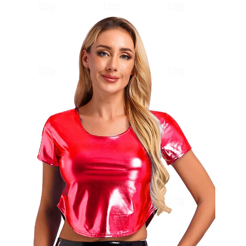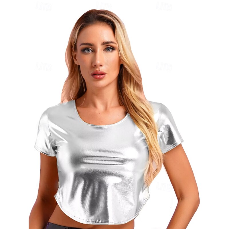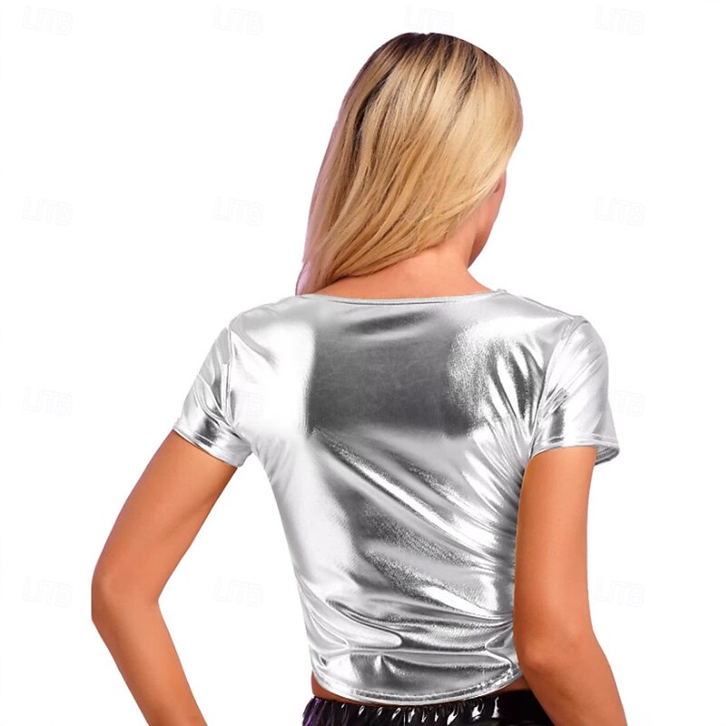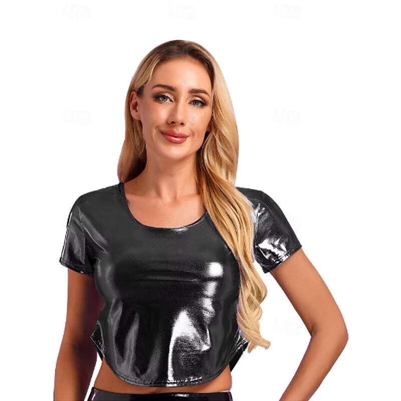 Retro Vintage 1980s T-shirt Crop Top Disco Shiny Latex Patent Metallic Fancy Dress Women's Halloween Carnival Music Festival Pride Parade Pride Month Adults' T-shirt Summer 5