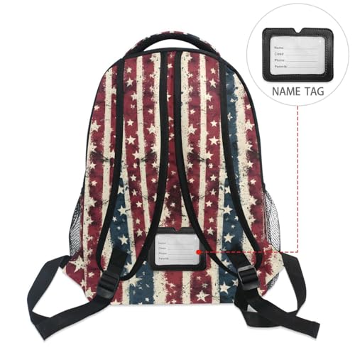 Retro Striped Star American Flag Backpack for School Boys Girls Adults Kids Bookbag Laptop Bag 15L 1