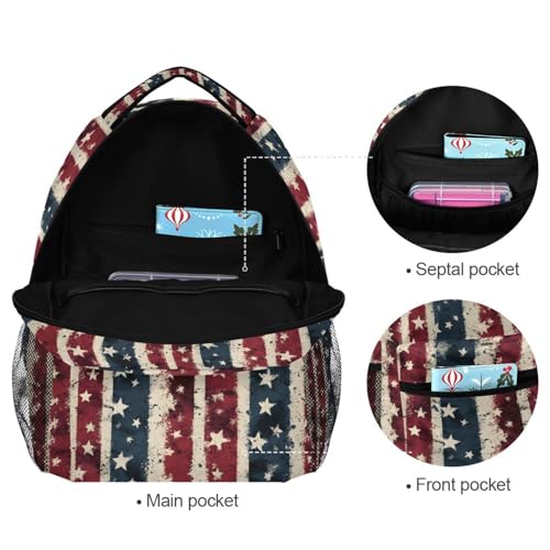 Retro Striped Star American Flag Backpack for School Boys Girls Adults Kids Bookbag Laptop Bag 15L 7