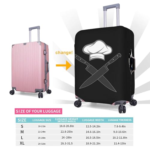 Fashion Baggage Suitcase: Give You A Good Travelling Mood. With The distinctive Skull Knife Chef Hat Pattern Will Also Help You Easy To Find Your Luggage Quickly And Pick Up At The Airport.Durable And Elastic: This Washable Luggage Cover Is Made Of 100d Polyester Material, Only Include One Luggage Cover, Not Including The Suitcase.4 Size Available:S (Suitable For 18-20 Inch Luggage),M(Suitable For 22-25 Inch Luggage),L(Suitable For 26-28 Inch Luggage),Xl(Suitable For 28-32 Inch Luggage),If Your Luggage Cover Is Soft Shell Style,Please Order A Bigger Size.Unique Design Luggage Covers For Suitcase: 2 Openings At The Top For Telescoping Handle And Carrying Handle, Both Sides Have Zippers For Side Handles. The Unique Design Makes You Easy To Fit And Remove.Applicable Scenarios: For Outings, Business Trips And Other Luggage Protective Cover, Our Suitcase Cover Protector Can Protect Your Suitcase From Dust And Scratches. Perfect for everyday use. premium materials and excellent craftsmanship ensure long-lasting durability.