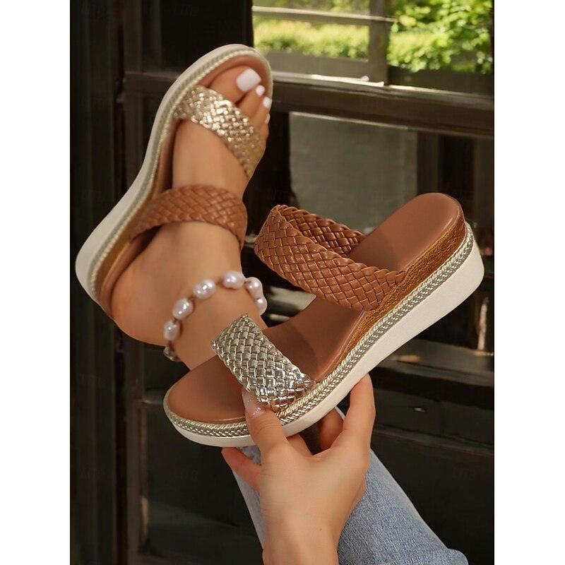 HOT ! Women's Woven Platform Sandals with Dual Straps, Casual Summer Shoes with Metallic Accents, Comfortable Footwear for Vacation and Daily Wear