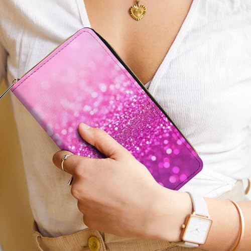 Women's Travel Zipper Purse Fashion Design, Huge Storage Capacity Purse, Cute Decor Wallet, Long PU Wallet Pink Glitter Pattern 1