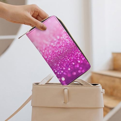 Women's Travel Zipper Purse Fashion Design, Huge Storage Capacity Purse, Cute Decor Wallet, Long PU Wallet Pink Glitter Pattern 2