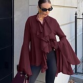More information about Women's Shirt Plain Elegant Stylish Basic Long Sleeve Bell Sleeve Regular Tops Daily Holiday Ruffle Black Wine Summer Spring Fall