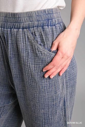 HOT ! Umgee Mineral Wash Elastic Waistband Pants with Side Pockets & Unfinished Frayed Hem Detail