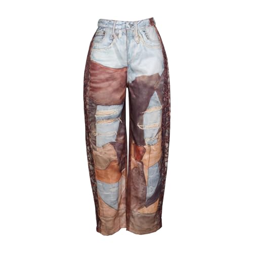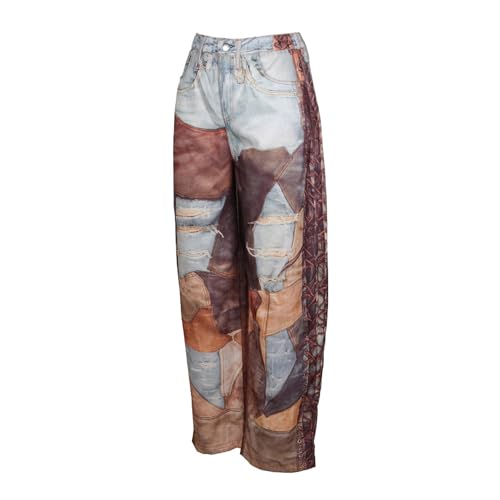 • These women's baggy jeans feature a unique color block design that adds a touch of boldness and creativity to your wardrobe, ensuring you stand out wherever you go. The versatile style of these jeans allows you to easily pair them with your favorite tops, sneakers, or boots for a complete and on-trend look