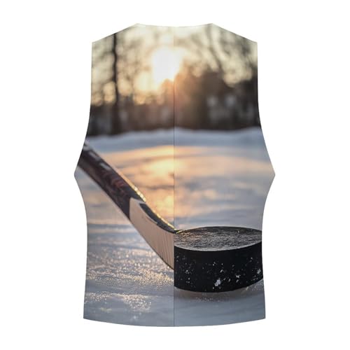 HOT ! Hockey Puck And Stick Sliding Across The Ice Men's Suit Vests Dress Vest V-Neck Waistcoat Slim Business Formal with Pocket
