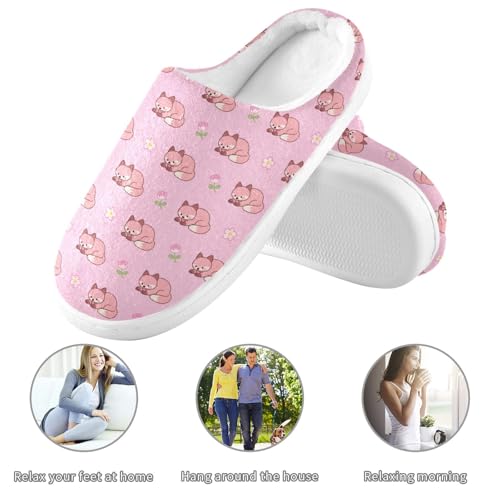 Cute Fox Flowers Floral Pink Slippers for Women Men Indoor Slippers Memory Foam Fuzzy Slippers House Shoes for Indoor Outdoor Size 6/7 2303783 3