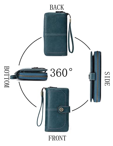 Womens Wallet Leather Large Capacity Card Holder Zipper Wristlet Wallets for Women-peacock blue 6