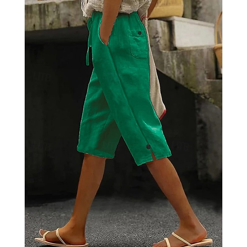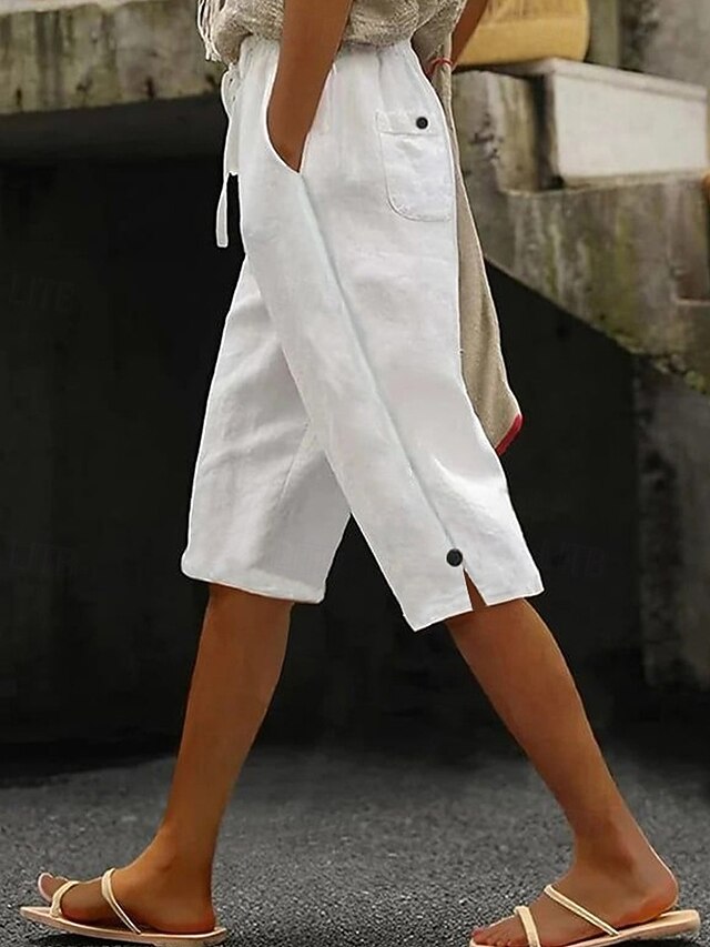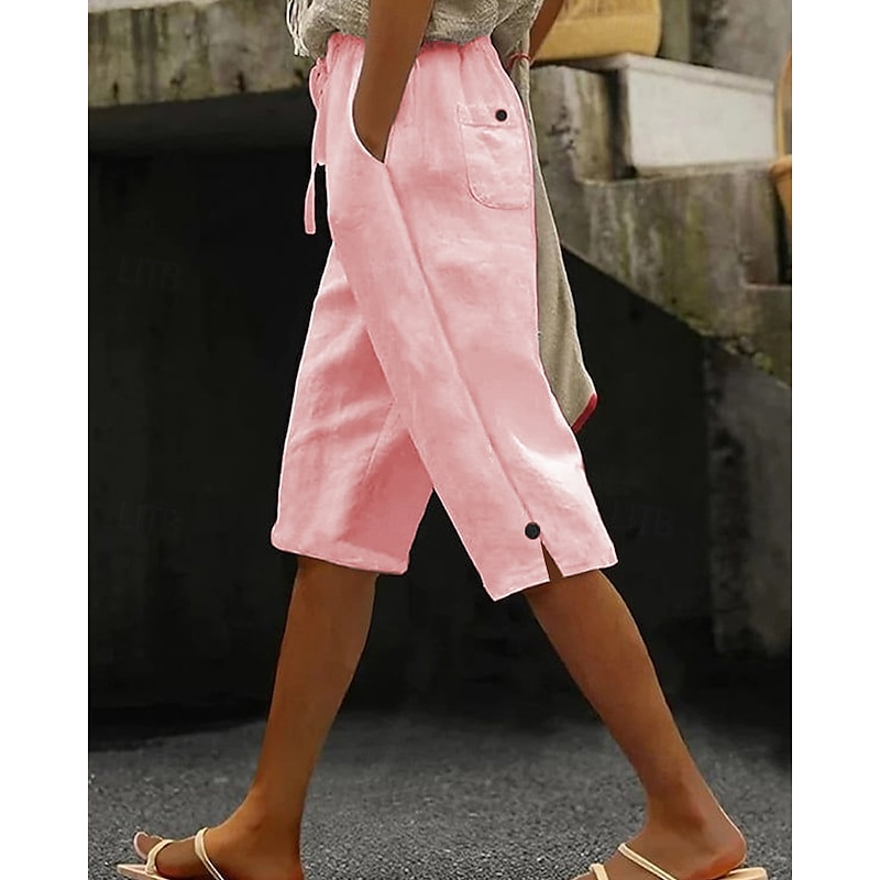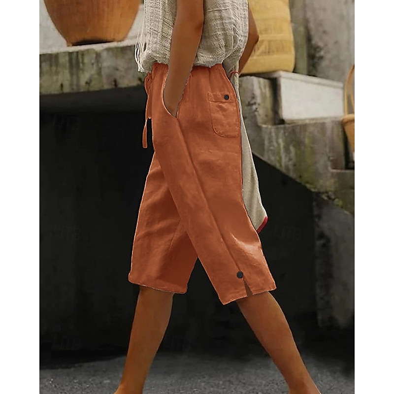 More information about Women's Capri Pants Slacks Casual Calf-Length Natural Plain Pocket Elastic Drawstring Design Comfy Outdoor Outdoor Going out Orange red White Pink Blue Summer Regular Fit