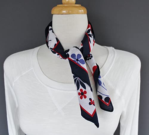 Navy Blue Red White floral scarf square neck hair headband kerchief daisy flower strawberry 7