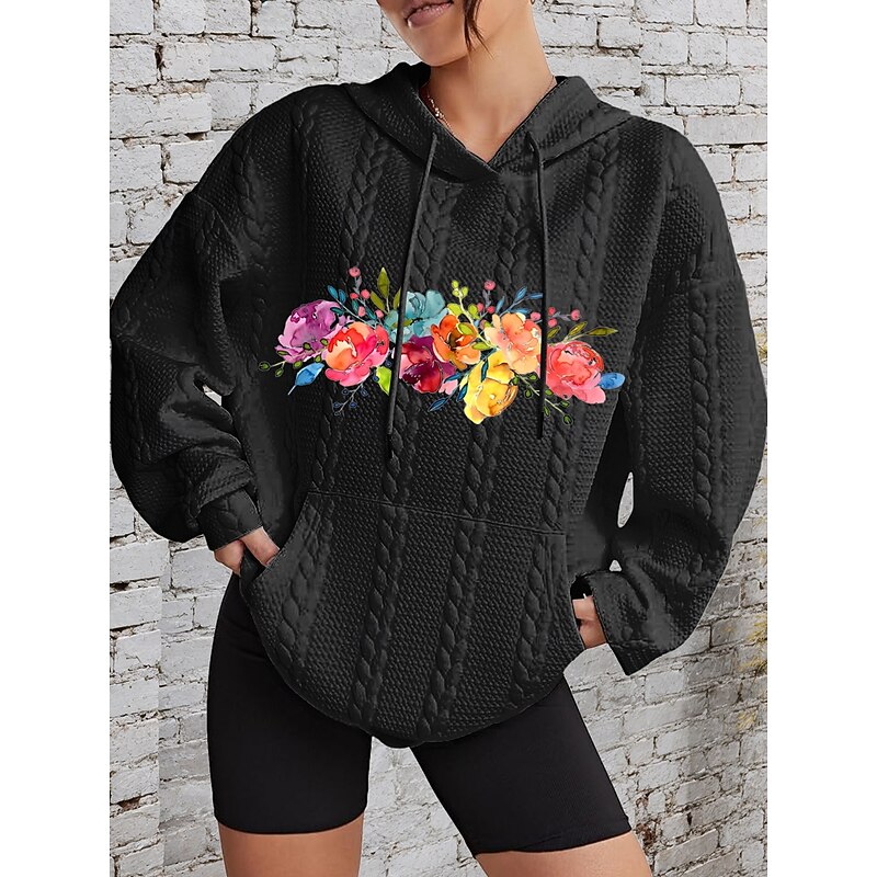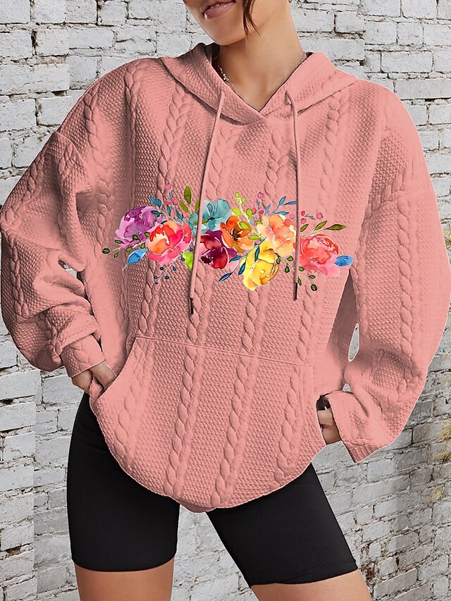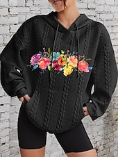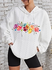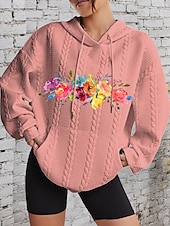 More information about Women's Hoodies Floral Graphic Sportswear Casual Long Sleeve Hooded Regular Tops Casual Sports Drawstring Print Front Pocket Black White Pink Gray Fall Winter