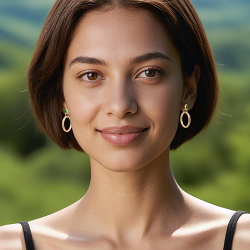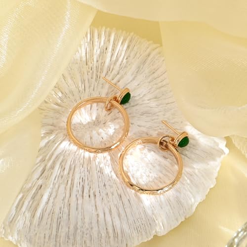• Suitable size: The gold and green earrings measure 1.37 inches and the hoops are 0.98 inches in diameter. These vintage earrings are truly everyday, but the emerald stones are the finishing touch. The stud style is easier to wear and relaxing to wear all day long, effortlessly pairing them with both casual and formal attire