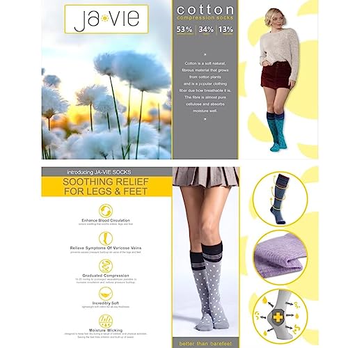 More information about ja vie Textured Stripe Sport Compression Socks Cotton Knee High for Women & Men Running, Pregnancy, Flight Travel (15-20mmHg)