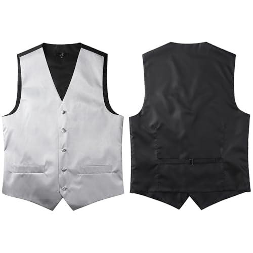 ZEROYAA Men's Solid 4pc Shiny Satin Vest Necktie Bowtie Pocket Square Set for Suit or Tuxedo 6