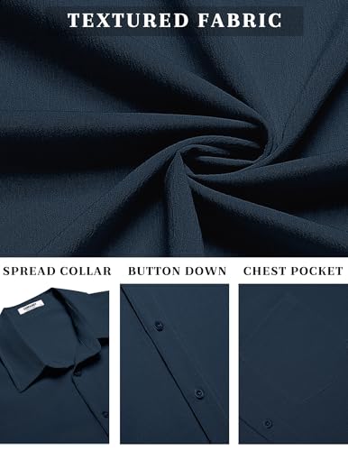 • Fashion Textured Fabric: Our mens short sleeve casual shirt crafted from a stylish linen-liked textured material, soft and breathable which ensures you stay cool, lightweight, comfortable, and at ease in hot summer days