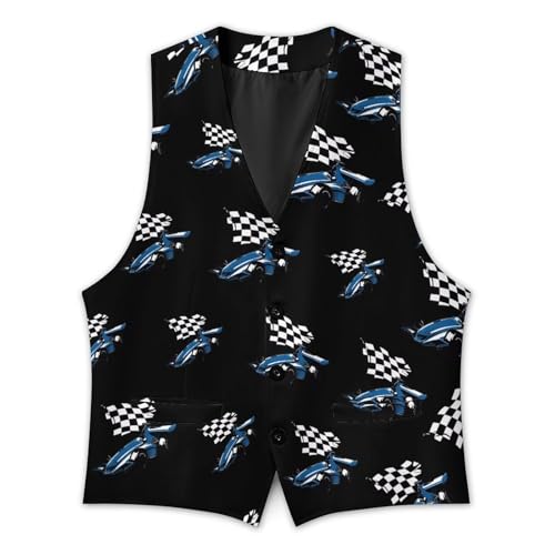 Blue Car with Racing Flag Novelty Men's Suit Vest Casual Formal Dress Vests Business Waistcoat 1