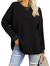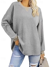 More information about Women's Pullover Sweatshirt Sweatshirts Plain Streetwear Casual Long Sleeve Crew Neck Regular Tops Street Going out Patchwork Black White Green Khaki Gray Fall
