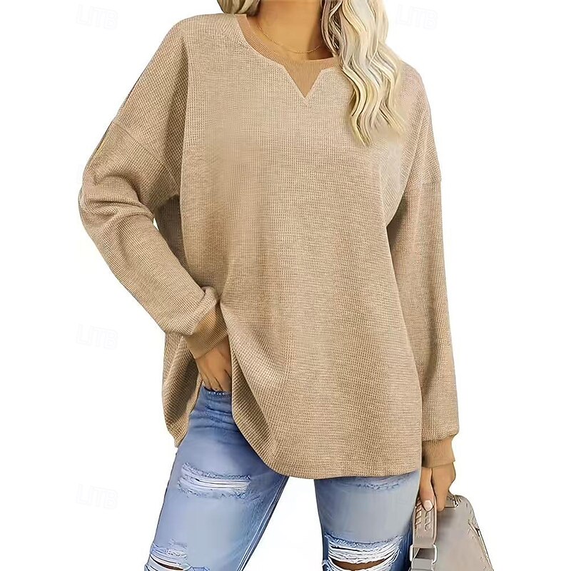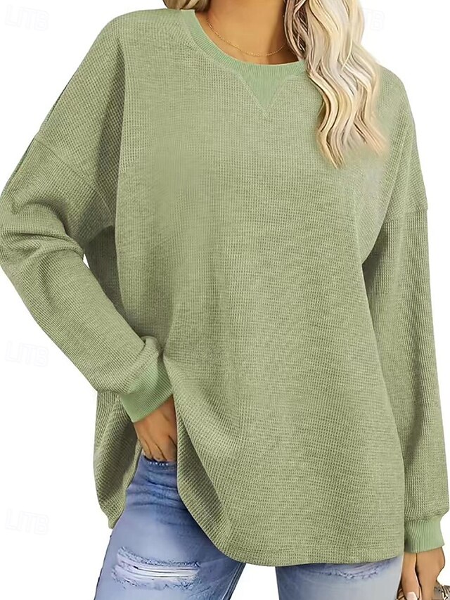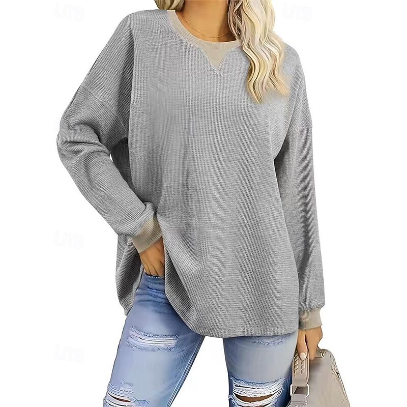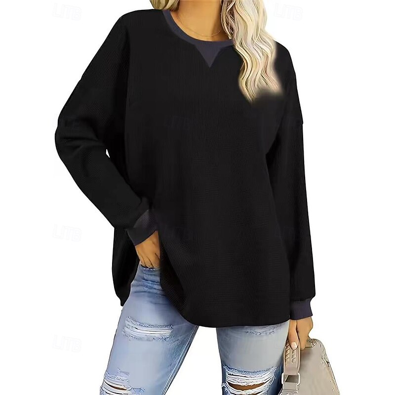 HOT ! Women's Pullover Sweatshirt Sweatshirts Plain Streetwear Casual Long Sleeve Crew Neck Regular Tops Street Going out Patchwork Black White Green Khaki Gray Fall
