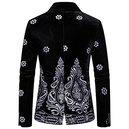 • FEATURES - DJ suit jacket, Single-breasted, Notched Lapel, Center Vent, one button closure, Shiny Looking, sequin decoration, four button cuffs, left chest fake welt pocket, two front flap pockets, Blazer Featuring Hot Stamping Printing Process.