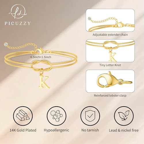 DEARMAY Gold Initial Bracelets for Women, 14K Dainty Gold Plated Knot Letter Bracelet Trendy A-Z Adjustable Chain Jewelry Non Tarnish Charm Bracelet Personalized Gift for Her 1