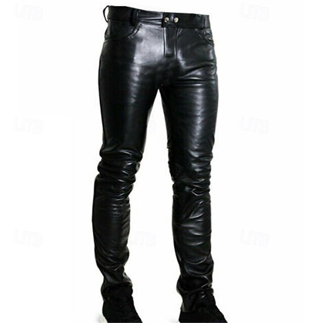 More information about Men's Trousers Faux Leather Shorts Buttons Pocket Plain Comfort Outdoor Daily Fashion Casual Black Micro-elastic