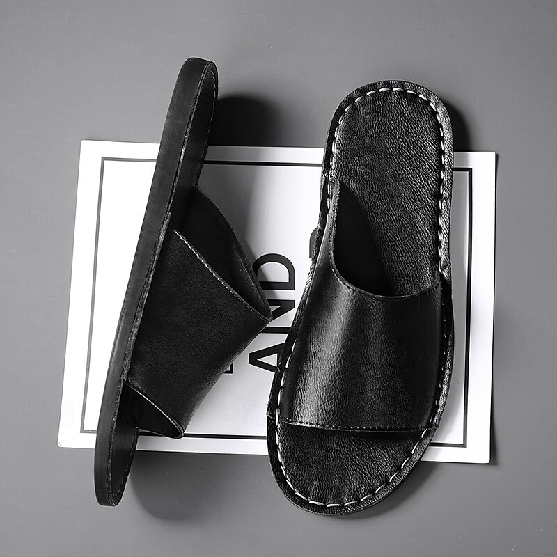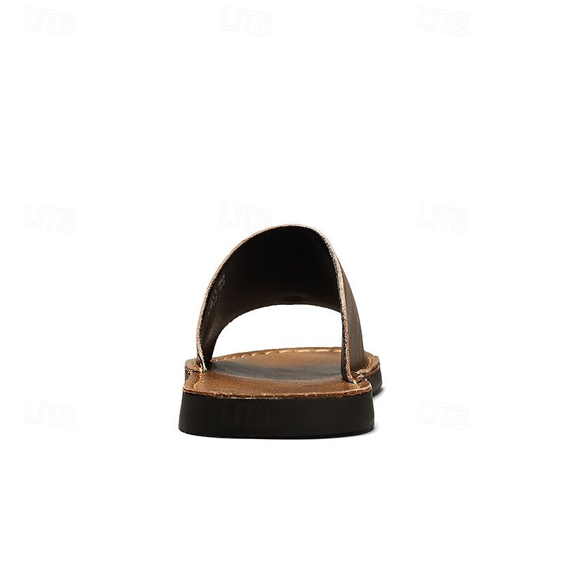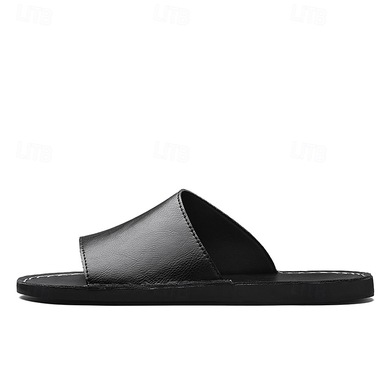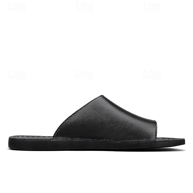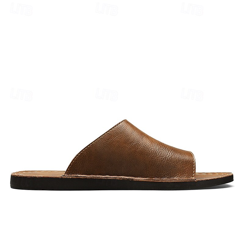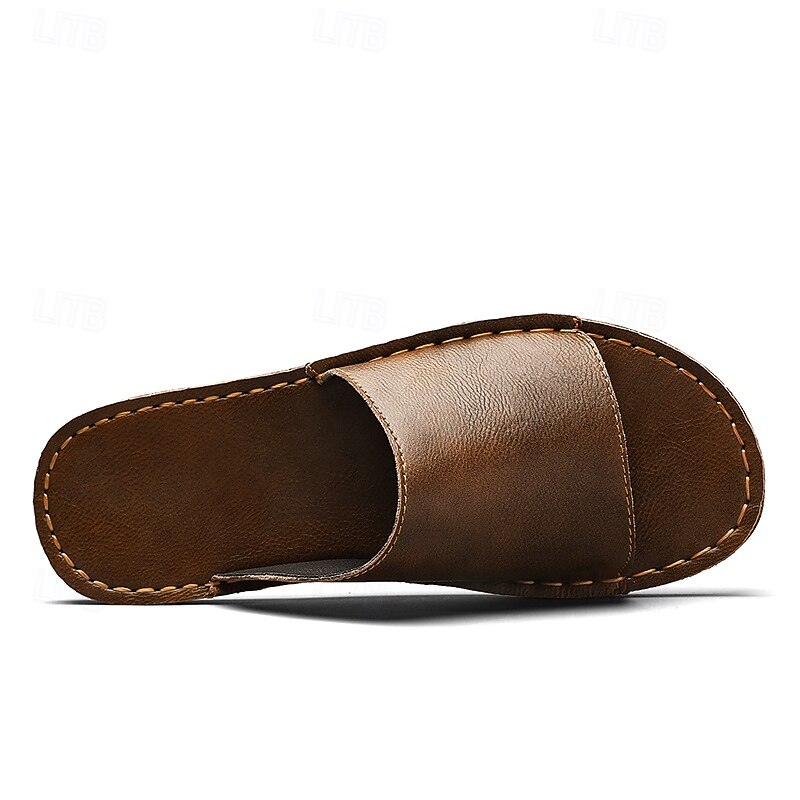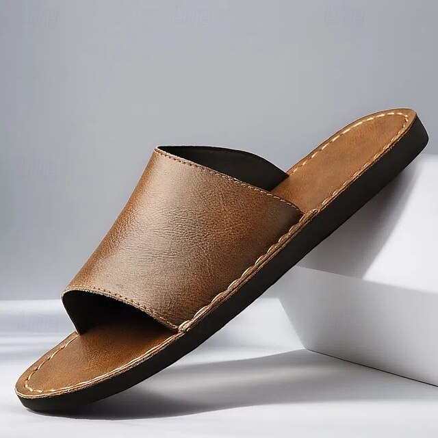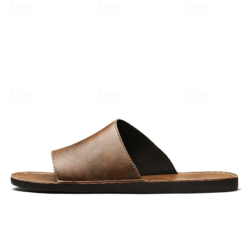 HOT ! Men's Brown Faux Leather Slide Sandals with Minimalist Design Slip-On Comfort for Adults Perfect for Indoor Relaxation Casual Daily Wear Hotel Spa Use