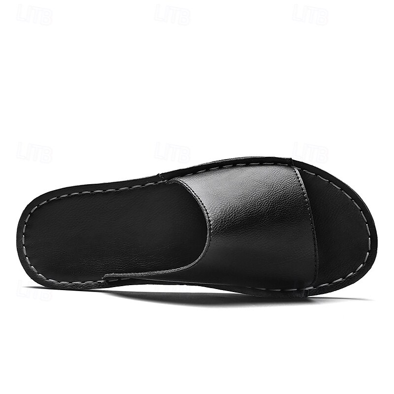 Men's Brown Faux Leather Slide Sandals with Minimalist Design Slip-On Comfort for Adults Perfect for Indoor Relaxation Casual Daily Wear Hotel Spa Use 26