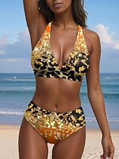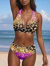 More information about Women's Swimsuits Bikini 2 Piece Cheeky Swimsuit Halter Vintage Sexy Ombre Graphic V Wire Sleeveless Bathing Suits