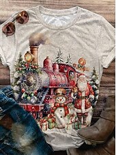 More information about Christmas Women's T Shirt Graphic Santa Claus Vintage Stylish Classic Short Sleeve Crew Neck Round Neck Regular Tops Daily Print Black White Red Blue off-white Summer Spring Winter