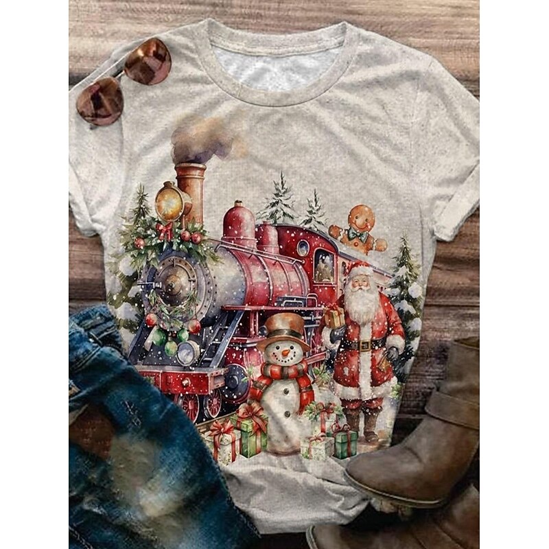 Christmas Women's T Shirt Graphic Santa Claus Vintage Stylish Classic Short Sleeve Crew Neck Round Neck Regular Tops Daily Print Black White Red Blue off-white Summer Spring Winter 6