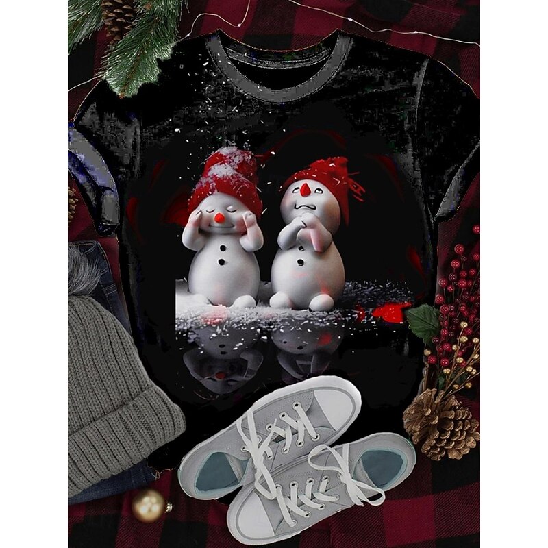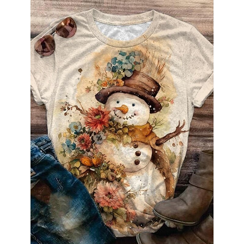 Christmas Women's T Shirt Graphic Santa Claus Vintage Stylish Classic Short Sleeve Crew Neck Round Neck Regular Tops Daily Print Black White Red Blue off-white Summer Spring Winter 7
