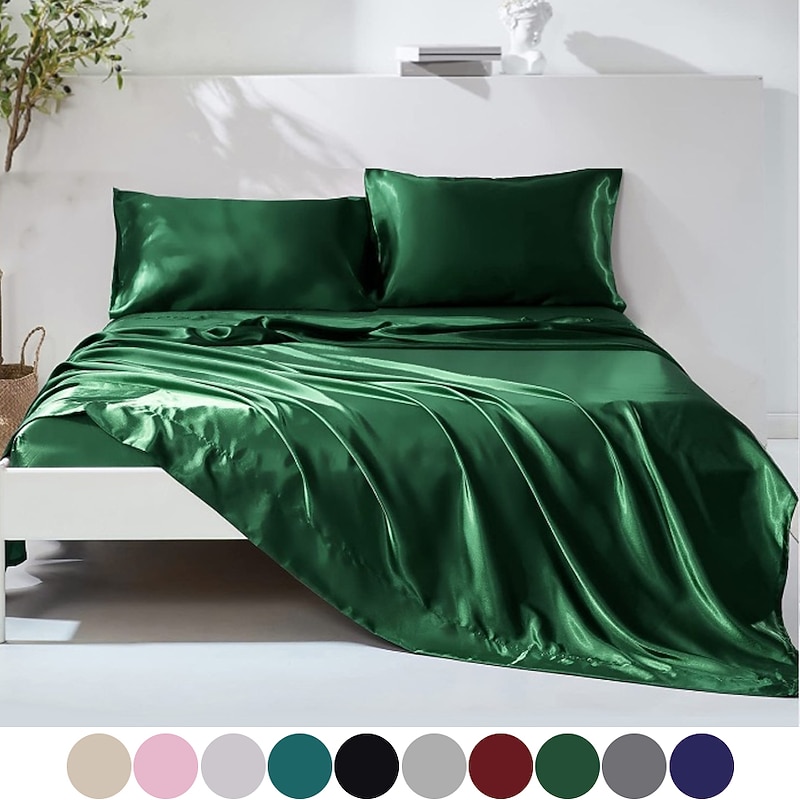 This 4 Pieces Satin Sheet Sets Hotel Luxury Silky Bed Sheets supple Premium Satin Sheets Wrinkle & Fade Resistant Bedding Set Sheet Set, Include 1 Deep Pocket Fitted Sheet(12inch),1 Flat Sheet, 2 Pillowcases combines elegant design with practical functionality. Every detail has been carefully considered to ensure you get the best possible experience. The finest construction means this product will serve you well for years to come.