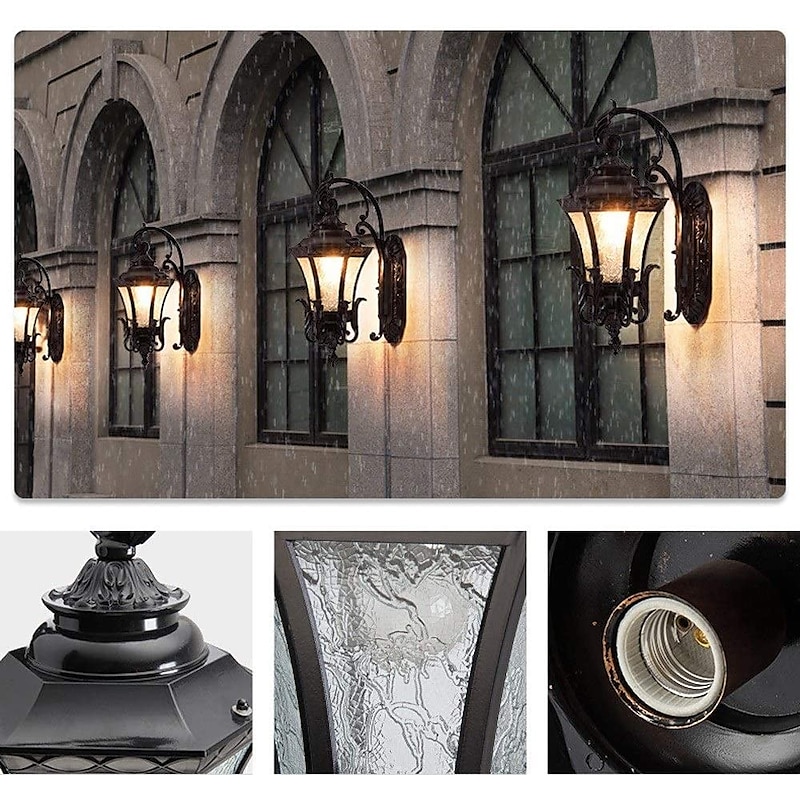 More information about LED Wall Sconce Lighting Fixture Antique Wall Sconce Lantern External Waterproof Rustproof Aluminum Glass Lantern Wall Lamp Lantern Courtyard Garden Balcony Villa Decorative Lights
