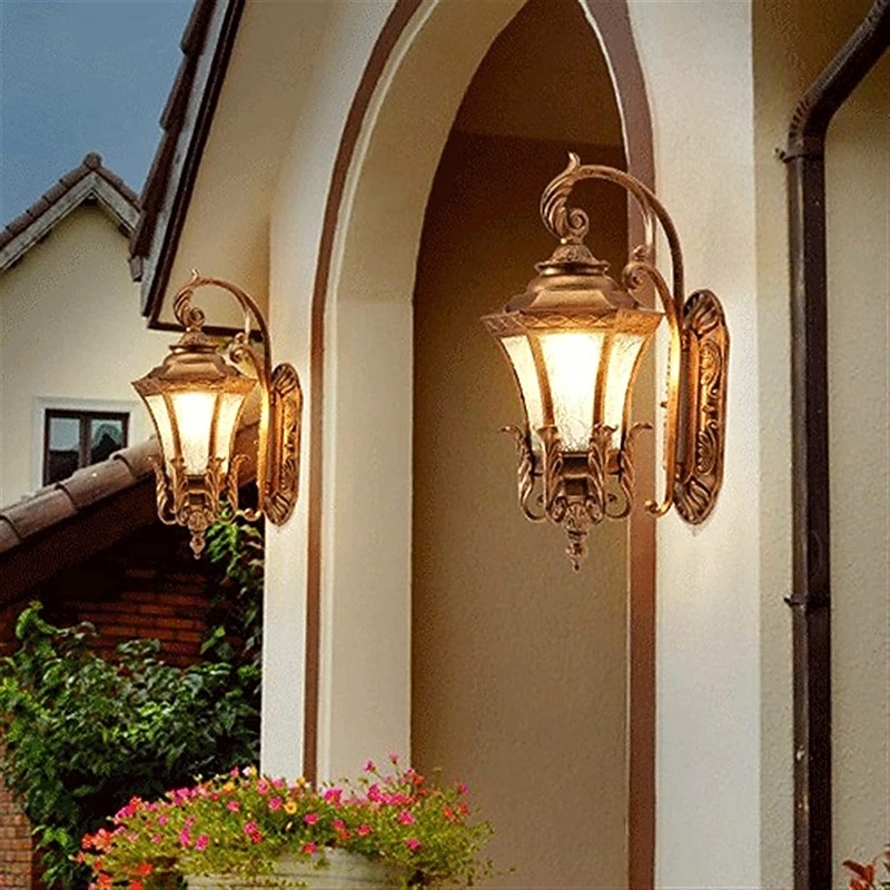 LED Wall Sconce Lighting Fixture Antique Wall Sconce Lantern External Waterproof Rustproof Aluminum Glass Lantern Wall Lamp Lantern Courtyard Garden Balcony Villa Decorative Lights 1