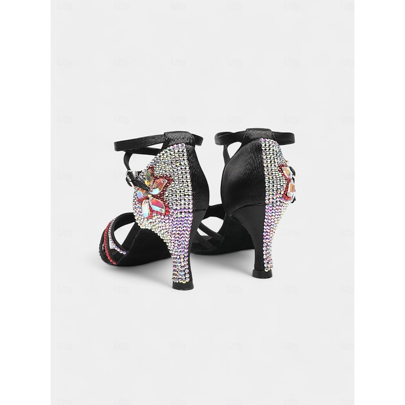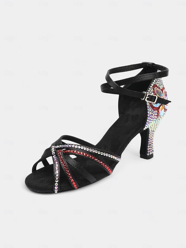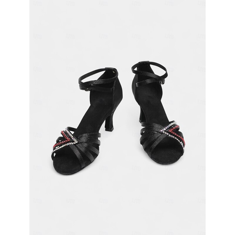 Women's Black Rhinestone Latin Dance Shoes with Ankle Strap and Mid Heel – Perfect for Ballroom, Salsa, and Party Performances 1