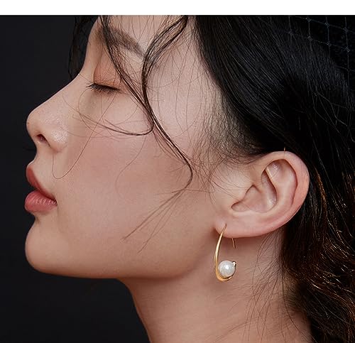 18K Plated Minimalist Pearl Hoop Earrings - Trendy Geometric Shaped Gold Pearl Earrings for Women, Fashion Jewelry 5