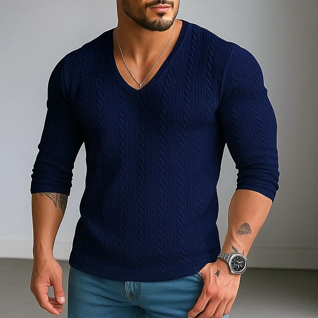 More information about Men's Ribbed Knit tee Tee Top Mock Turtleneck Long Sleeve Turtleneck Fall Winter Plain Jacquard Modern Casual Comfortable Basic Home Street Casual White Navy Blue Royal Blue Top Tee for Men