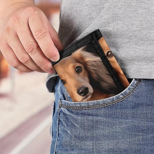 Long Haired Dachshund Trifold Wallet, Card Cases And Money Oganizer Thin Stylish Mini Coin Bag with Zipper Coin Pocket Credit for Men And Women 3