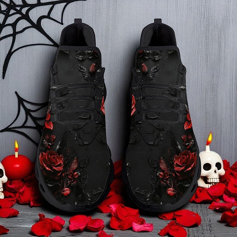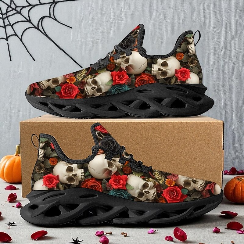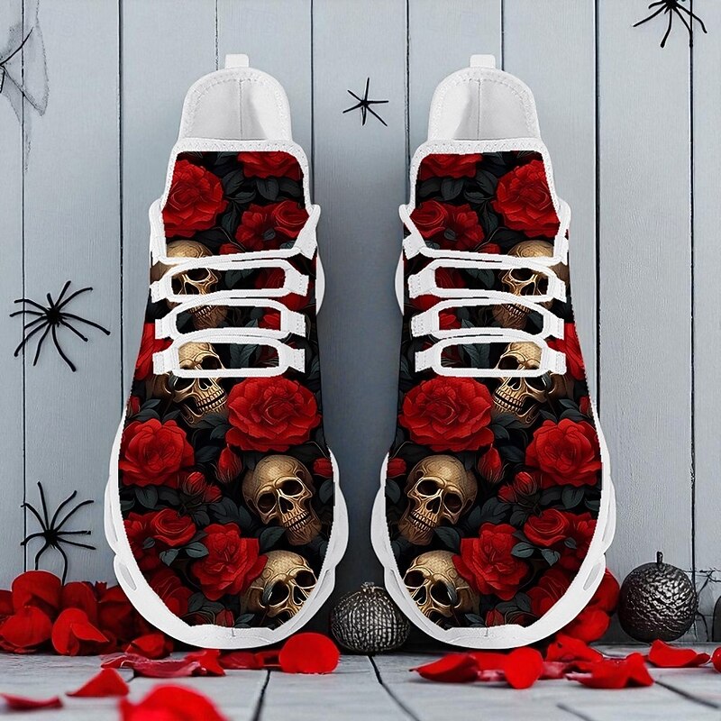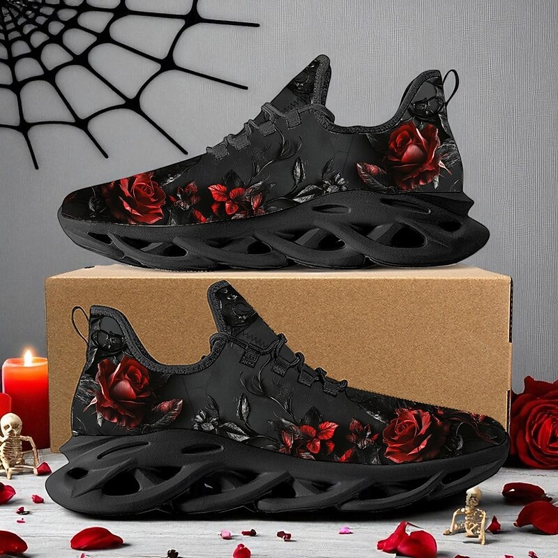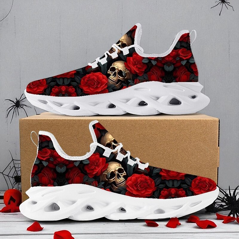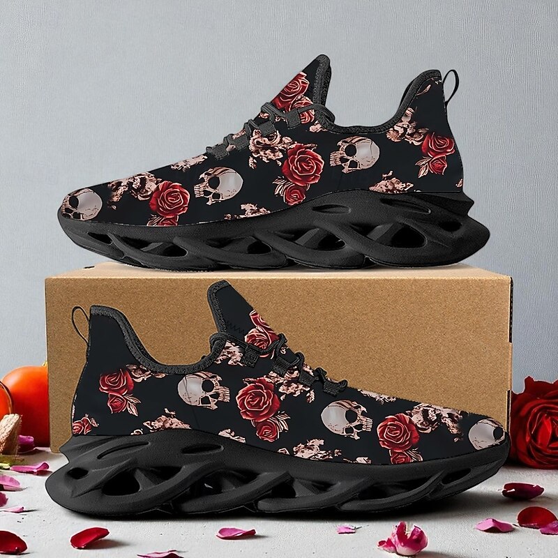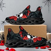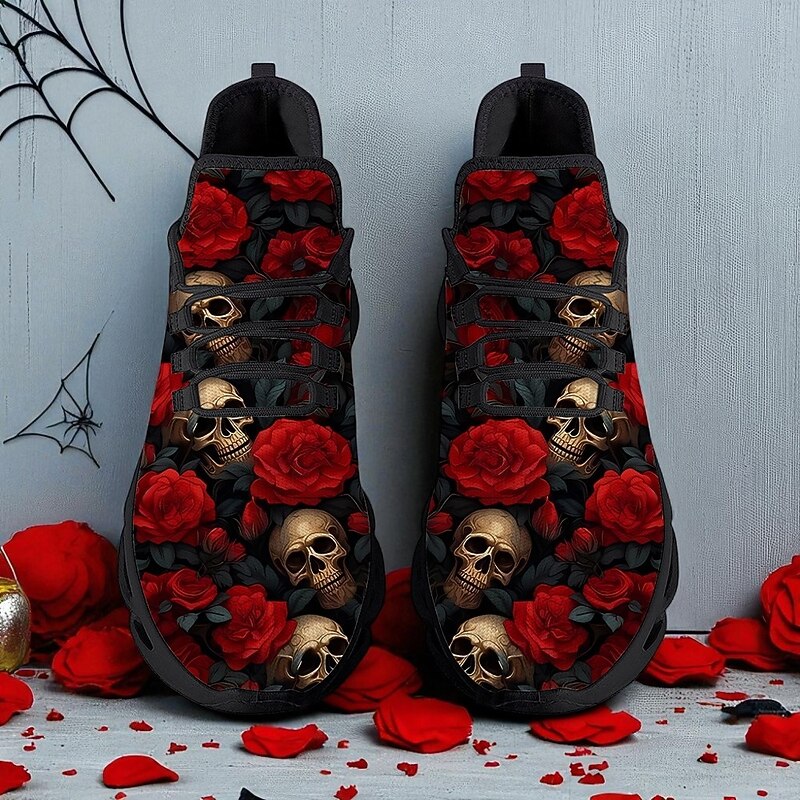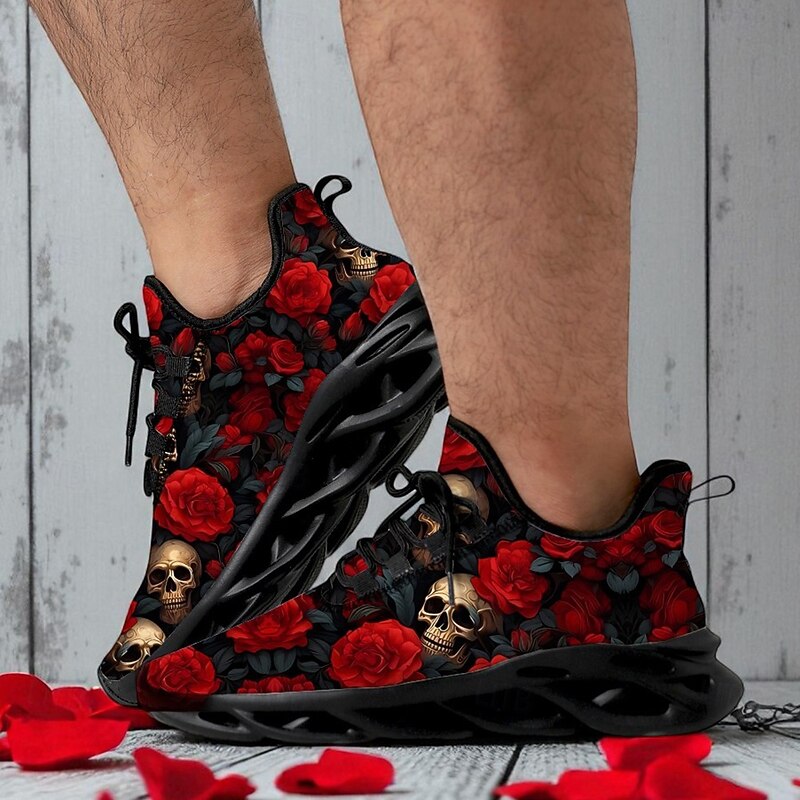 HOT ! Men's Rose Skull Print Lace-Up Sneakers – Gothic Casual Halloween Shoes with Comfortable Sole for Party, Cosplay and Everyday Outfits
