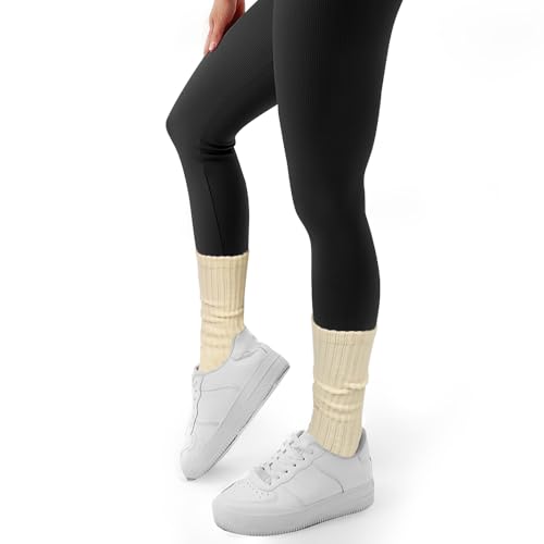 Slouch Socks Crew Women: 98% Cotton 3 Pairs Socks with Boot Sneakers 5