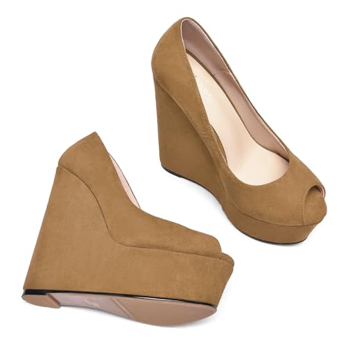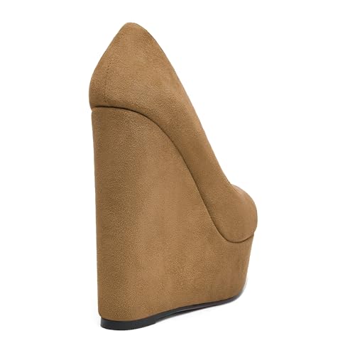 MOVINSTEPS Womens Fashion Peep Toe Suede Night Club Slip On Platform Wedge High Heel Pumps Shoes 6 Inch 5