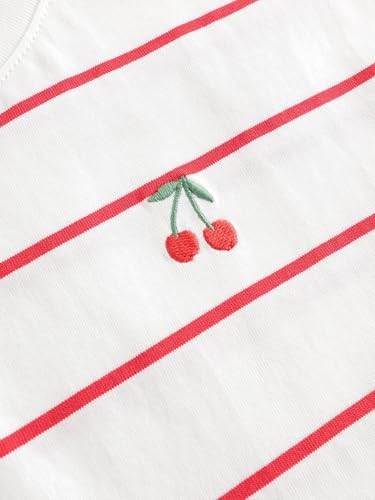 • Floral Cherry Stripe Cotton Tee: Cool and breathable, perfect for staying fresh in the summer heat