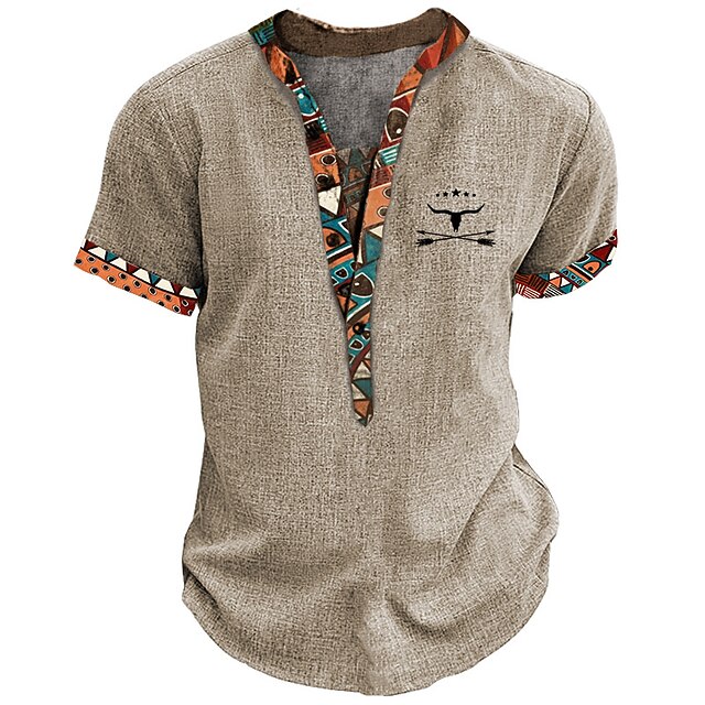 More information about Men's Graphic Tribal Henley Shirt Short Sleeve 3D Print Fashion Designer Basic Outdoor Daily Summer Blue Khaki Gray Stand Collar Henley T-Shirt