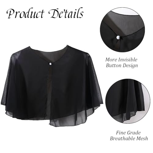 Black Chiffon Capelets Shawl Capes Shrug Sheer Shawls and Wraps Polyester Elegant Soft Silky Cape Bole Mesh Scarf Flapper Cover Up for Women Evening Dresses Bridal Wedding Party Accessories 3