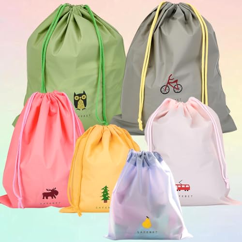 CREATCABIN 6Pcs 6 Colors Waterproof Drawstring Bag Gym Storage Bags Bulk Polyethylene Cartoon Pattern Sport Travel Cosmetic Draw String Organize Pouch for Home Clothes Shoes Swimming Beach Yoga 5